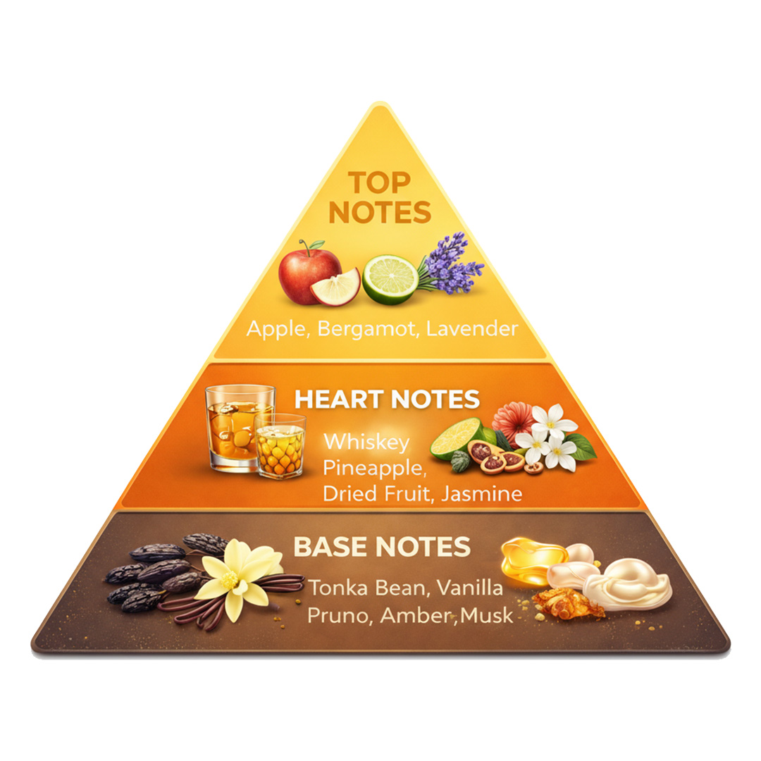 - قلب العطر: ويسكي، أناناس، فواكه مجففة، ياسمين